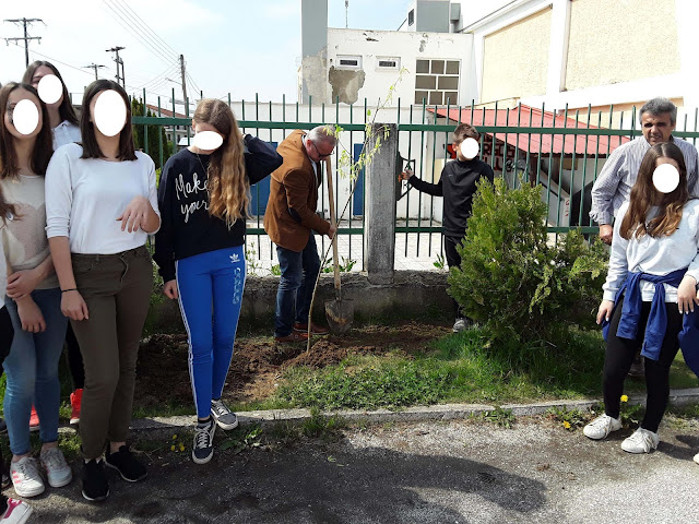 Στον αύλειο χώρο του "2ου Γυμνασίου Άργους Ορεστικού" οι μαθητές ασχολήθηκαν με τη δράση της δενδροφύτευσης.